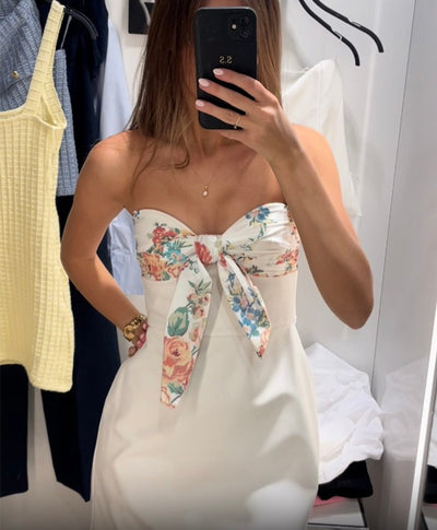 💐 Bustier in chiffon floreale con dettaglio fiocco