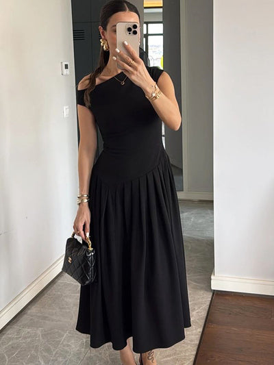 Il design femminile a pieghe esalta la silhouette, mentre le maniche corte aggiungono un tocco di eleganza. Il taglio fluido a trapezio valorizza ogni figura e rende l'abito versatile, perfetto sia per le occasioni speciali che per la vita di tutti i giorni. - Ideale per l'estate, le vacanze o le occasioni speciali